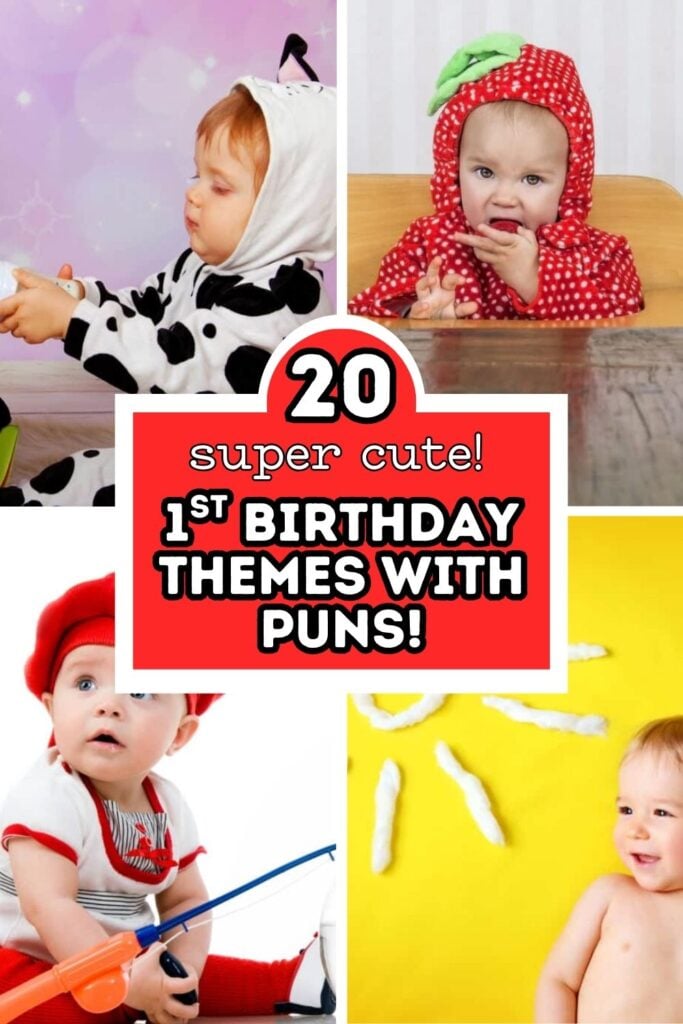 Whether you’re looking for something sweet, silly, or a little sporty, there’s a pun first birthday theme for every little one.