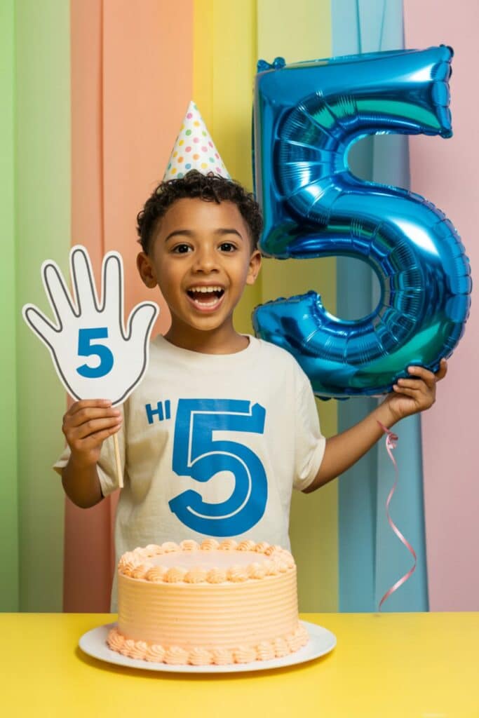Celebrate turning five with big foam hands, colorful balloons, and high-five challenges.
