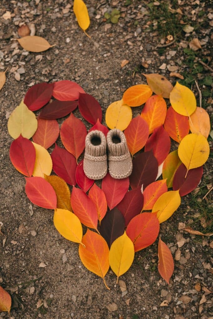 Arrange colorful fall leaves (real or fake) in the shape of a heart on the ground, then place your ultrasound or baby shoes in the center.