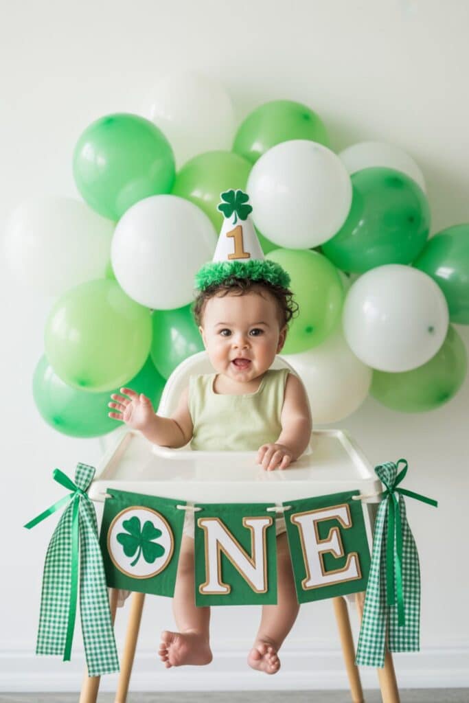 This theme is perfect if your baby turns one in March or you just love a bright, cheerful green moment.