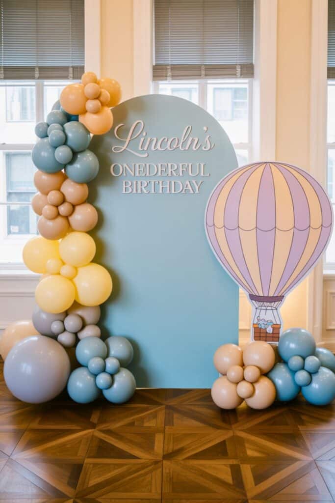 Balloon garlands fill space, photograph beautifully, and make even small parties look styled.