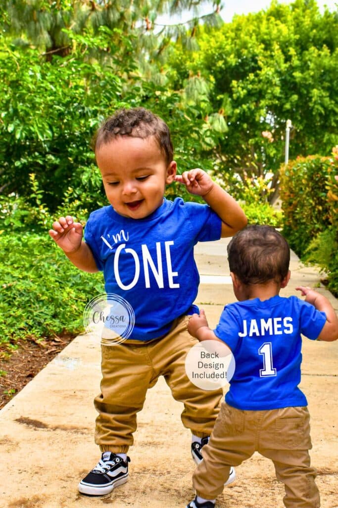 29. Use a personalized “one” shirt or name tee for keepsake photos.