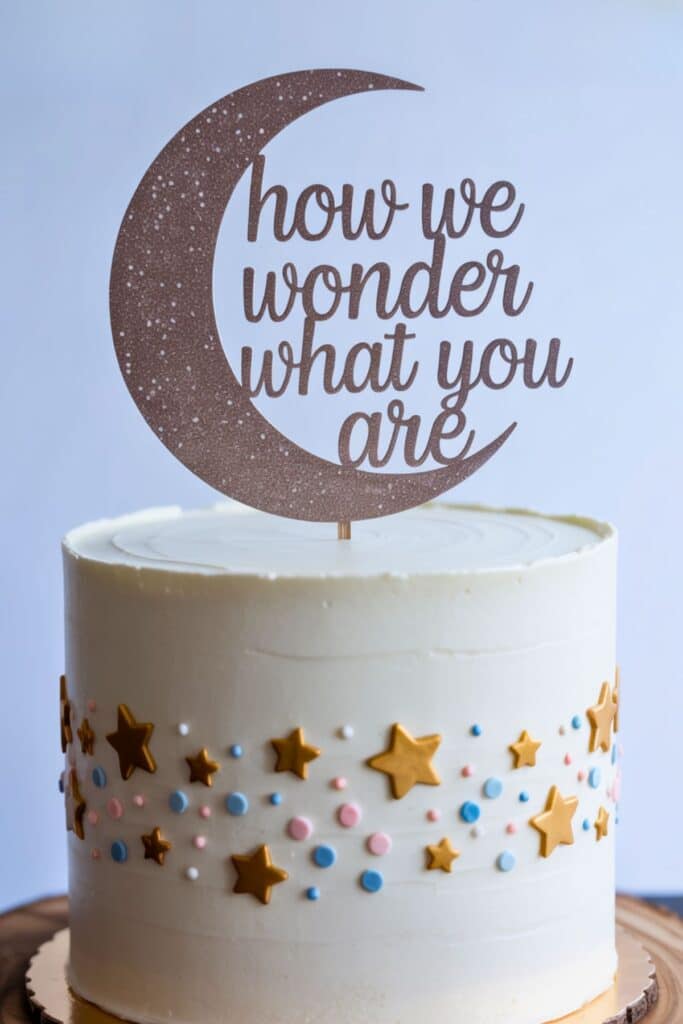 24. Moon & Stars – Simple moon topper; galaxy-blue or blush interior.