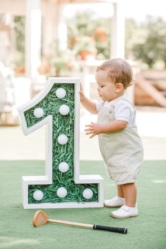 This oversized “1” filled with grass and golf balls is such a fun focal point—and it doubles as the perfect photo spot.