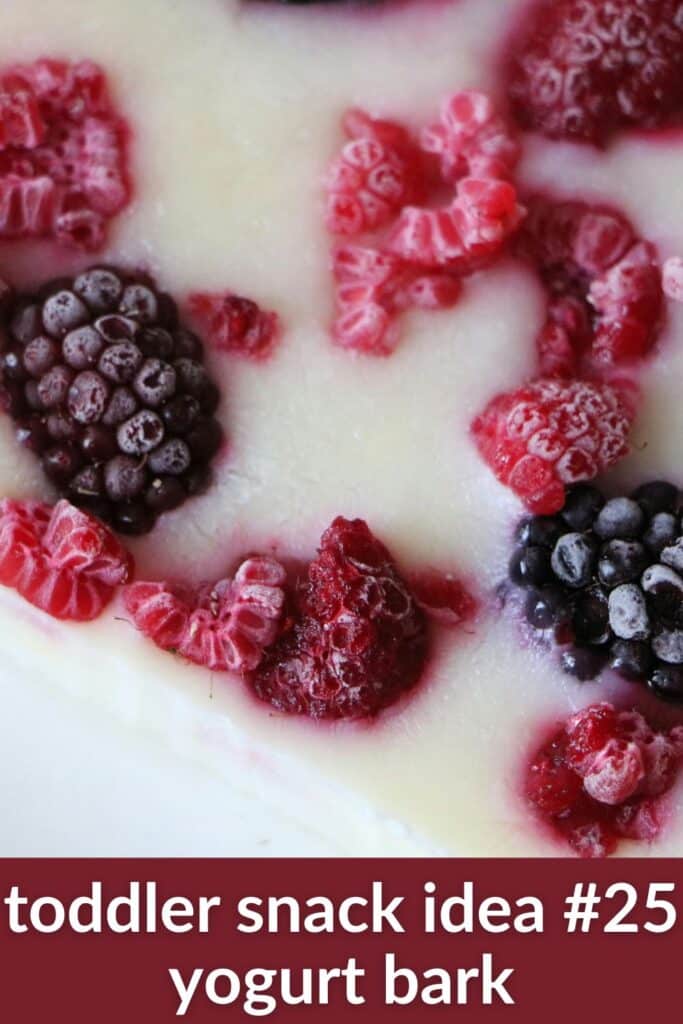 Spread yogurt on a tray, sprinkle with fruit + crushed cereal; freeze and snap.